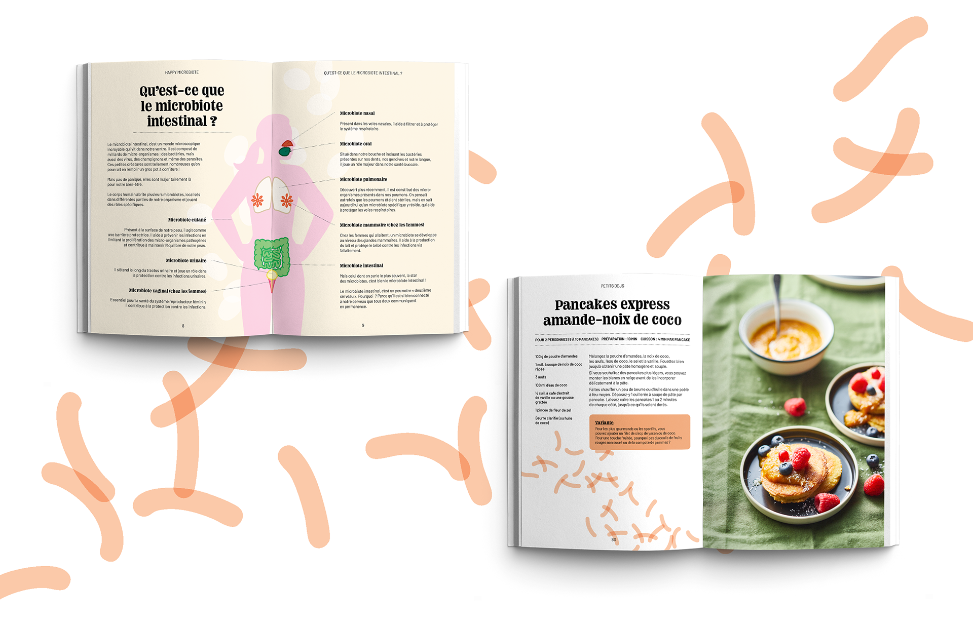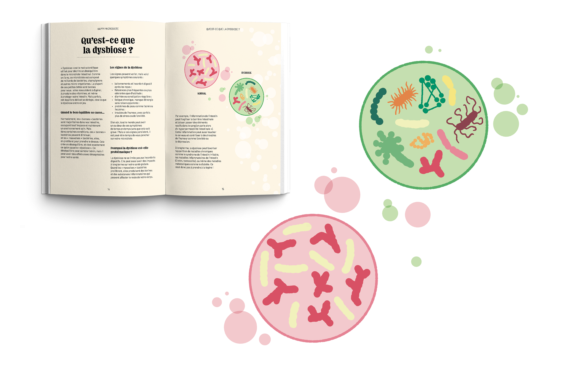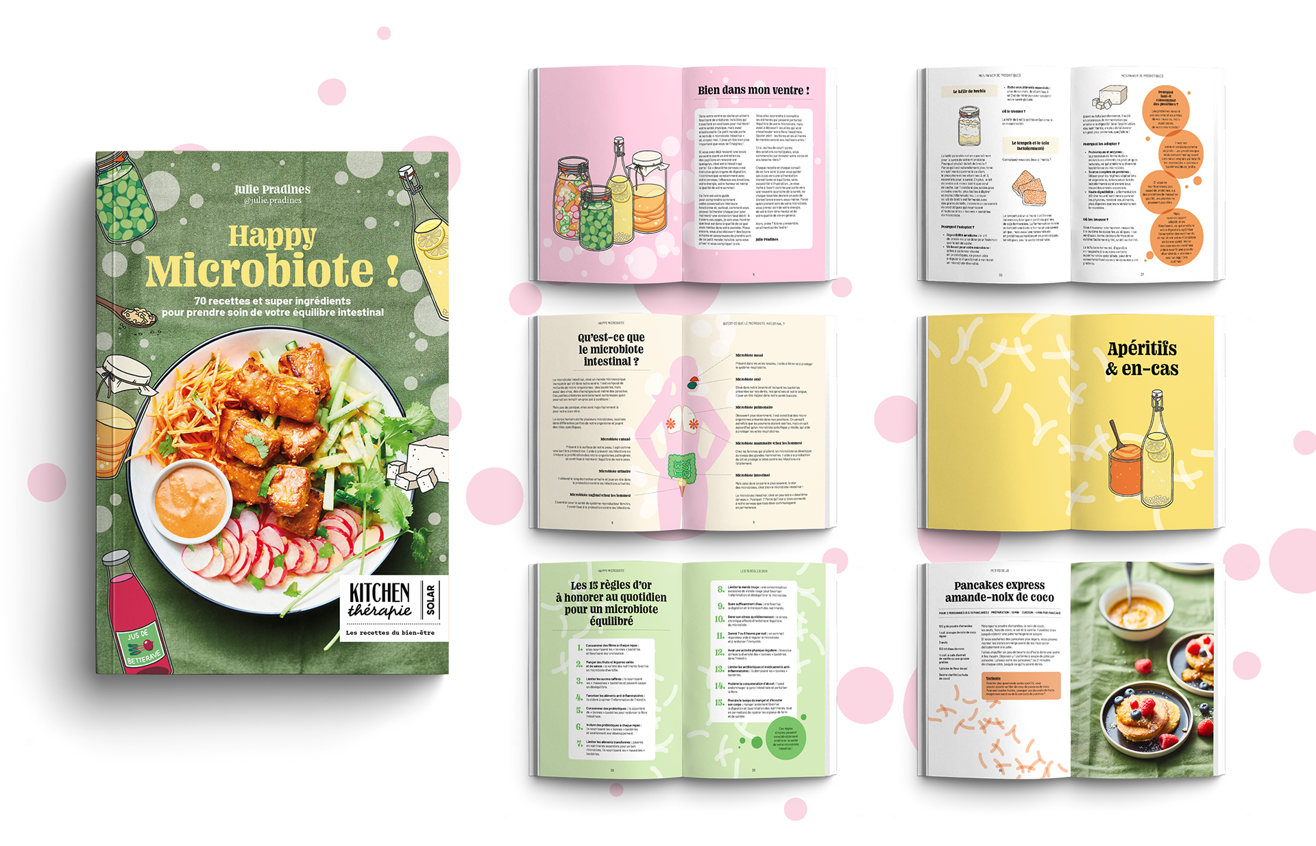 Ce guide pratique mêle recettes, conseils et astuces pour rééquilibrer son microbiote intestinal. J’ai donc travaillé à créer une identité visuelle vivante, chaleureuse et claire pour accompagner au mieux le lecteur dans cet univers.