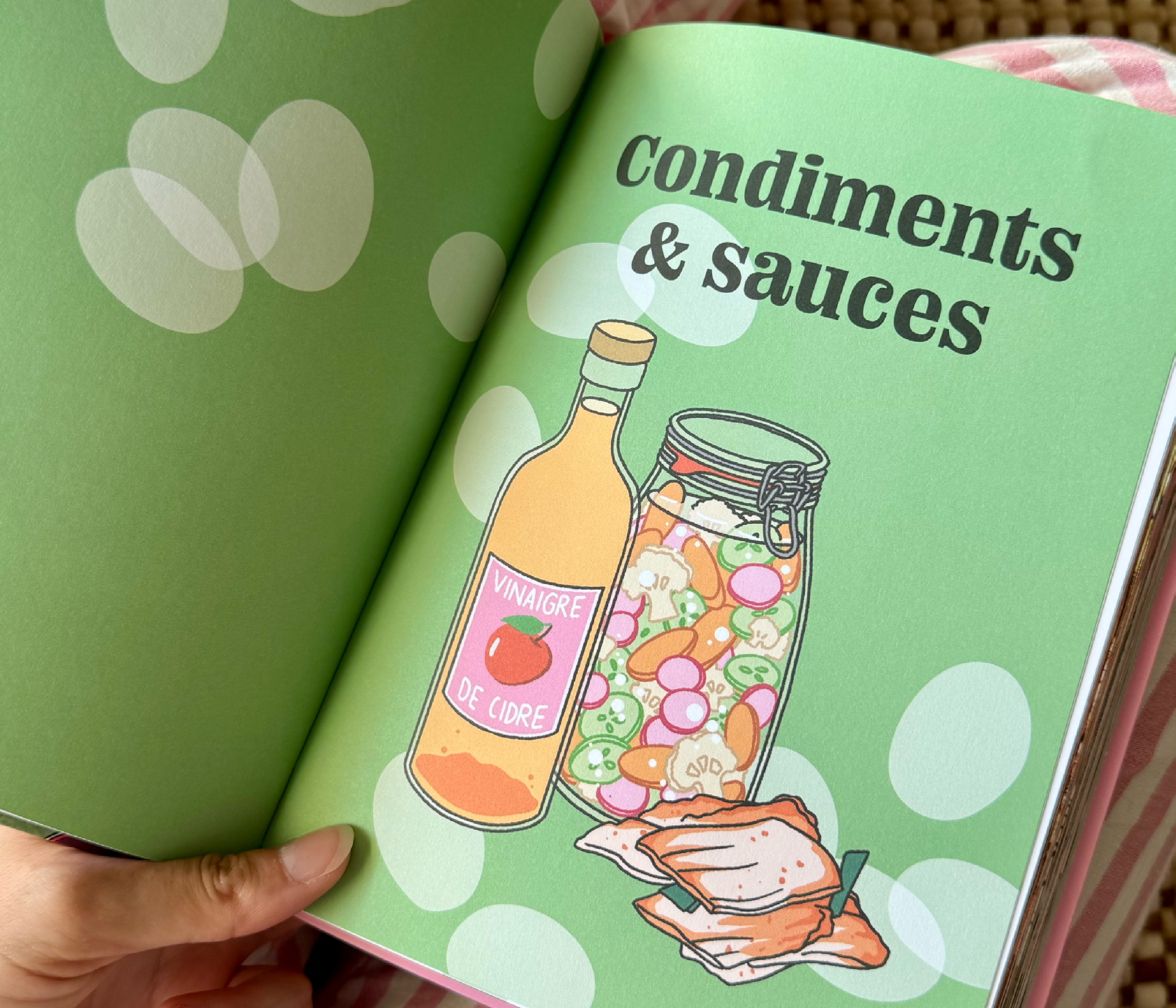 Pour la couverture, j’ai exploré plusieurs pistes avant d’aboutir à une composition expressive et gourmande, qui valorise les superbes photos réalisées par L’Atelier Chez Elles. La couverture finale est un mélange harmonieux entre une de leurs photos et mes illustrations, pour un résultat à la fois vivant, moderne et très attractif.