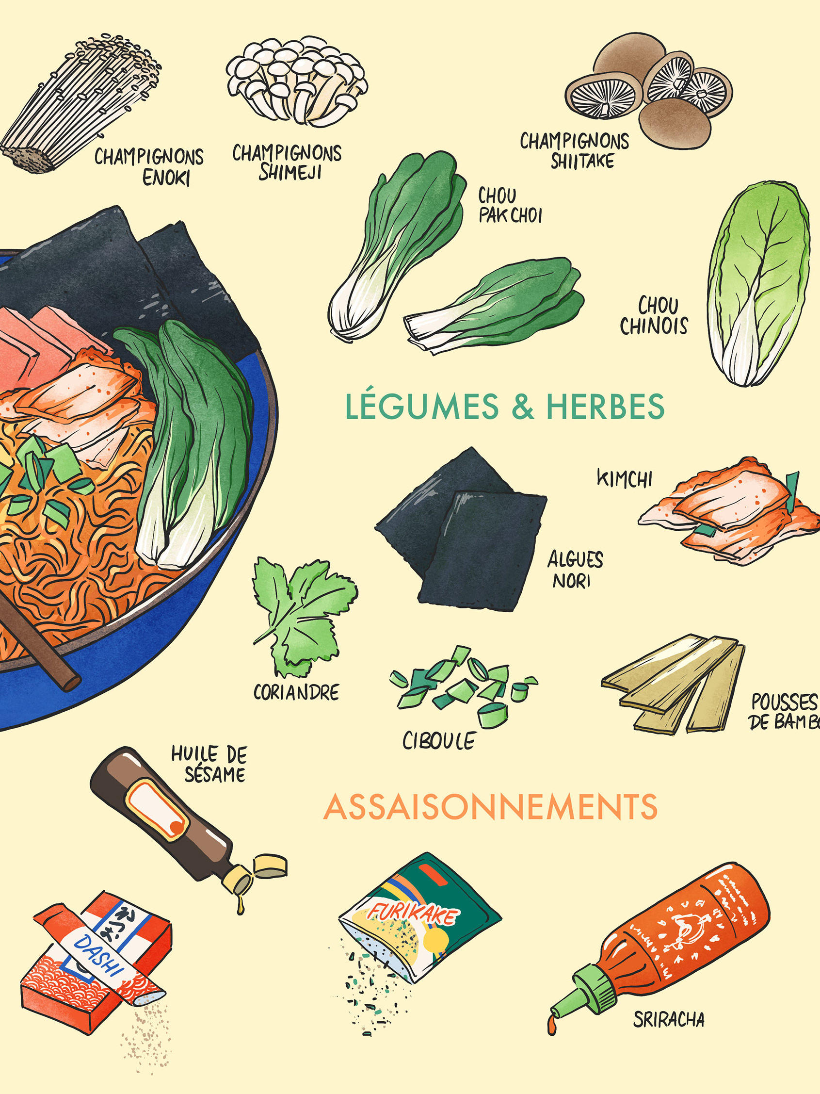 Les vignettes ne se contentent pas de représenter des plats, elles capturent l’essence de la culture coréenne et recréent l’ambiance conviviale des repas partagés. En illustrant des éléments tels qu’une maison traditionnelle coréenne ou la skyline de Séoul, les vignettes offrent un contexte géographique et culturel qui plonge le lecteur dans l’univers coréen, renforçant ainsi l’expérience culinaire proposée par le livre.